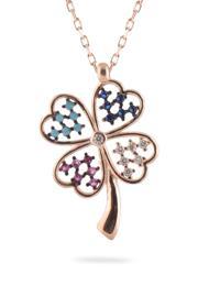 Rose renk mix zirkon taş kullanımı, kolyenin modern ve trend bir görünüm kazanmasını sağlar