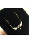 - Zarif tasarımıyla dikkat çeken sarı lacivert tektaşlı kanatlı altın kaplama bayan gümüş kolye, şıklığınızı tamamlar