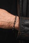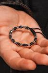 Siyah Hematit Taşlı Ayarlanabilir İpli 925 Ayar Gümüş Detaylı Erkek Bileklik