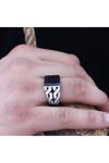 Siyah Oniks Taşlı Yanı İşlemeli Özel Seri Erkek Gümüş Yüzük