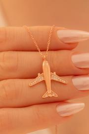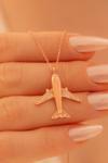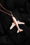 Osmanlı Gümüş Uçak Figürlü Zirkon Taşlı Rose Kaplama Kadın Gümüş Kolye - Sevgililer Günü - Hediye