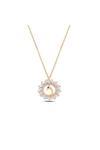 Osmanlı Gümüş markasının zarif tasarımıyla dikkat çeken bu kolye, zirkon taşlarıyla süslenmiştir ve rose renkli yuvarlak bir model sunar.