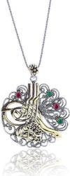 925 ayar gümüş oksitli telkari kök yazkut ve kök zümrüt taşlı Osmanlı tuğrası kolye..