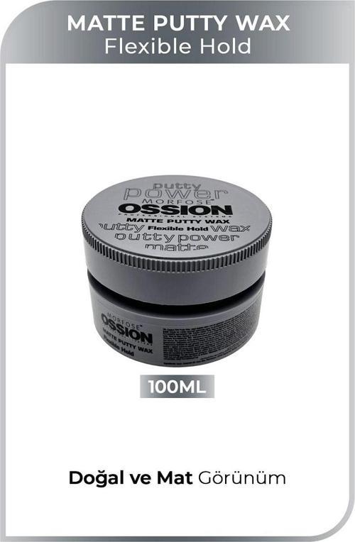 Ossion Matte Putty Wax, saça mat bir görünüm vermek için dizayn edilmiştir. Kremsi yapısı sayesinde kullanım kolaylığı sağlar. Flexible (yumuşak) bir tutuşa sahiptir. Su bazlı formülü ile saçlara zarar vermez.