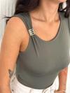 Osy Modal Yumuşak Dokulu Kumaş Bisiklet Yaka Sıfır Kol Bluz Omuz Toka Aksesuar Detaylı - Haki