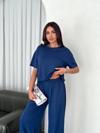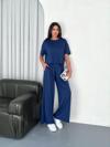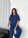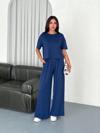 Mzp Kartan Osy Modal Yumuşak Dokulu Kumaş Bisiklet Yaka T-shirt Bol paça Pantalon ikili Takım -Saks Mavi