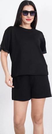 Mzp Kartan Osy Modal yumuşak dokulu Kumaş Kadın Bisiklet Yaka T-shirt Kısa Şort İkili Takım - Antrasit