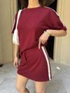 Osy Modal Yumuşak Dokulu Kumaş Parçalı Bisiklet Yaka T-shirt Mini Şortlu Etek İkili Takım -Bordo