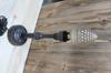 Tamamı metal malzemeden üretilmiş olup kaidesi dişbudak ağacındandır. Flanş çapı 10 cm'dir. yükseklik ..... cm. dir.E27 duyludur.