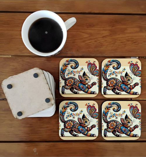 - Otantik kedi desenleriyle süslenmiş, her biri benzersiz olan 4 adet ahşap bardak altlığı.; - Kişiye özel tasarımı sayesinde, sevdiklerinize veya kendinize özel günlerde hediye edebileceğiniz anlamlı bir aksesuar.; - Doğal ahşap malzemesiyle hem dayanıklı hem de estetik bir görünüm sunar.; - Kare şekli ile standart bardak altlıkları arasında farklı bir stil oluştururken, masanızda şık bir kontrast yaratır.