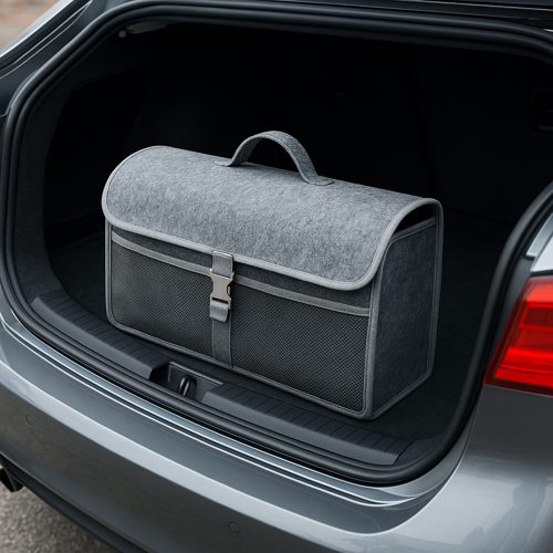 Bagajda düzen, araçta konfor! Bu premium keçe araba bagaj organizeri , araç içi düzeni sevenler için özel olarak tasarlandı. tokalı kapağı, file cepleri ve taşınabilir yapısıyla hem estetik hem de işlevsel bir çözüm sunar. Temizlik malzemeleri, oto bakım ürünleri, acil durum eşyaları ve seyahat aksesuarları için ideal saklama alanı sağlar.