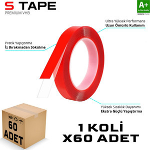 S-Dizayn Çift Taraflı Bant 10mm x 5 Metre Şeffaf Silikon VHB Bant 60'lı Koli A+Kalite