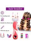 Saç örmek için tam otomatik alet: Saçınızı pembe makinenin yuvarlak deliğinden geçirin, düğmeye basın ve renkli ipek iplik iki saniye içinde saçınızın etrafına otomatik olarak dolanacak, bu da çok güzel ve güzel bir şekilde dekore edilmiş olacaktır.
