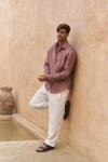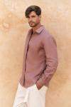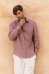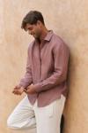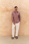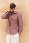 Oversize kesim, klasik yaka keten karışımlı erkek gömlek.