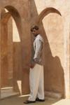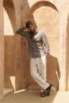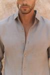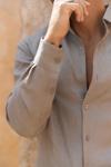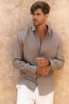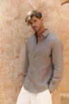 Oversize kesim, klasik yaka keten karışımlı erkek gömlek.