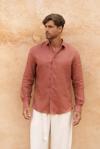 Oversize kesim, klasik yaka keten karışımlı erkek gömlek.