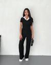 Tarz Kadın Modern Moda Normal Bel Boru Paça Polo Yaka Basic Polo Yaka Triko Alt-Üst Takım - Image 1
