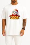 Oversize 2026 Yeni Yıl Yılbaşı Göğüs Baskılı Unisex T-Shirt