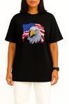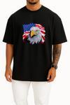 Oversize Amerika Kartalı Ve Amerika Bayrağı Göğüs Tasarımlı Unisex T-Shirt
