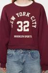 Oversize Bisiklet Yaka Düşük Kol Crop Slogan Geniş Kalıp Kalın İçi Polarlı Örme Sweatshirt