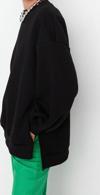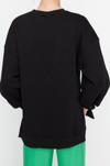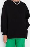 Oversize Bisiklet Yaka Düşük Kol Uzun Geniş Kalıp Yırtmaç Kalın İçi Polarlı Örme Sweatshirt