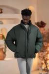 Oversize (Bol Kesim) Dik Yaka Fermuar Kapamalı Şişme Mont