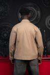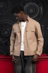 Kip Bej Kareli Regular Fit Dokuma Yün Karışımlı Overshırt