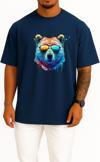 Bahriyeli Collection Oversize Cool Bear Psychedelic Bear Göğüs Tasarımlı Unisex T-Shirt