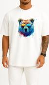 Oversize Cool Bear Psychedelic Bear Göğüs ve Sırt Tasarımlı Unisex T-Shirt