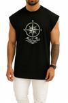 Oversize Dalgalar Arası Pusula - Denizci - Compass Göğüs Tasarımlı Atlet