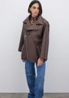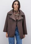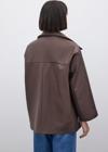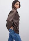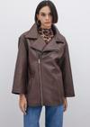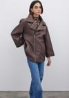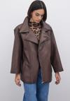 Geniş yaka, ön fermuarlı, cepli, geniş uzun kol, iç astarlı, oversize deri ceket.