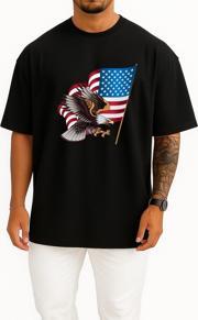 Bahriyeli Collection Oversize Flag Of United States And American Eagle Göğüs Tasarımlı Unisex T-Shirt