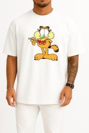 Bahriyeli Collection Oversize Garfield 'In Bingo Alt Özelliği Lasagneg Göğüs Tasarımlı Unisex T-Shirt