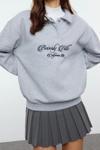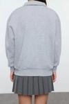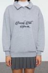 Oversize Gömlek Yaka Düşük Kol Uzun Gömlek Yaka Nakışlı Fit Kalın İçi Polarlı Örme Sweatshirt