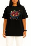 Oversize Izgara Üstünde Biftek Mangal Göğüs Baskılı Unisex T-Shirt