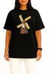 Bahriyeli Collection Oversize Kahverengi Ve Sarı Yel Değirmeni Göğüs Baskılı Unisex T-Shirt