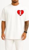 Oversize Kalp İçinde X Harfi Cep Tasarımlı Unisex T-Shirt