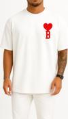 Oversize Kalp Ve B Harfi Cep Tasarımlı Unisex T-Shirt