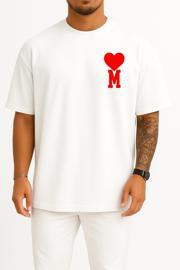 Oversize Kalp Ve M Harfi Cep Tasarımlı Unisex T-Shirt