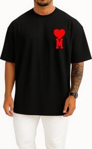 Bahriyeli Collection Oversize Kalp Ve M Harfi Cep Tasarımlı Unisex T-Shirt