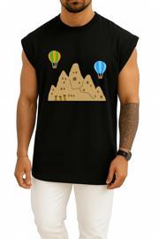 Oversize Kapadokya Peri Bacaları Ve Balonlar Göğüs Tasarımlı Atlet