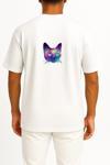 Oversize Kedi Kafası - Neon Cep ve Sırt Tasarımlı Unisex T-Shirt