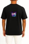 Bahriyeli Collection Oversize Kedi Kafası - Neon Cep ve Sırt Tasarımlı Unisex T-Shirt