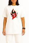 Oversize Kırmızı Acı Biber Logosu Göğüs Tasarımlı Unisex T-Shirt