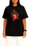 Oversize Kırmızı Acı Biber Logosu Göğüs Tasarımlı Unisex T-Shirt