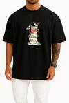 Bahriyeli Collection Oversize Kuş Ve Çay Fincanı, Çay Fincanı Havlu Çaydanlık Göğüs Tasarımlı Unisex T-Shirt
