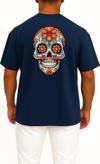 Bahriyeli Collection Oversize Mexican Day Of The Dead Skull Orange Pattern Cep ve Sırt Tasarımlı Unisex T-Shirt