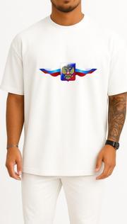 Oversize Multicolored Russia Coat Of Arms Logo Göğüs Tasarımlı Unisex T-Shirt
