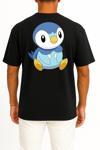 Oversize Piplup Cep ve Sırt Tasarımlı Unisex T-Shirt