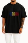 Bahriyeli Collection Oversize Romanian Flag Of Romania Folklore Pattern Göğüs Tasarımlı Unisex T-Shirt